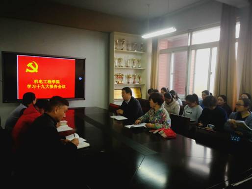 为学习好、宣传好、实践好党的十九大报告精神,按照学校有关要求和太阳集团网站8722的工作安排,2017年11月7日下午,太阳集团网站8722在院会议室组织召开了学习党的十九大报告专题会议,认真学习了习近平同志代表中国共产党中央委员会向大会所作的报告的部分内容。太阳集团网站8722全体教师参加学习,会议由机电学院党总支书记赵素琴同志主持。