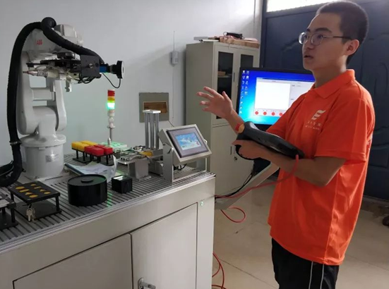 7月4日,实践团全体成员赴机械创新实验室进行了工业机器人的调试及对参加比赛的参赛选手进行了采访。队员们利用自主学习的知识加以课堂所学知识对机器人进行指令设定和维修,对机器人分别从自动分拣物体,码垛货物,拧螺丝,自动捕捉四个方面进行了讲解演示。此外队员们对参赛队员进行了采访,参赛选手说他们现在主要在练习尺规作图和三维建模,此外还自主学习比赛要求外的运动仿真,钣金,模流分析。他们不仅仅是为了参加比赛,更是为了通过不断的学习提升自己的能力。