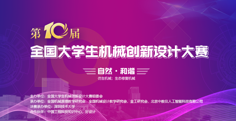 全国大学生机械创新设计大赛是教育部认可的56项全国大学生学科竞赛之一,截止2021年,全国大学生机械创新设计大赛已成功举办9届,旨在培养大学生的创新设计能力、综合设计能力与团队协作精神。本次大赛由教育部高等学校机械基础课程教学指导委员会、全国大学生机械创新设计大赛组委会主办,主题为“自然•和谐”。大赛通过PPT展示和作品功能演示的形式比赛,注重综合运用所学机械相关课程的设计原理与方法,注重作品原理、功能、结构上的创新性,对于提升大学生实践能力和创新能力、鼓励青年大学生践行“工匠精神”、深化教育教学改革具有重要的实践意义。