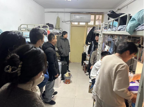 在走访过程中,领导和老师们与学生们进行了亲切地交流,对返校学生的思想状况、假期生活、新学期的学习计划、宿舍安全以及在生活中遇到的问题等方面进行了深入细致的交流。强调要高度重视宿舍的安全和卫生,还提醒学生们要勤开窗通风,保持宿舍干净整洁,注意用电安全。同时,他们也鼓励同学们相互关心、团结友爱,共同营造一个良好的学习和生活环境来迎接新学期的到来。