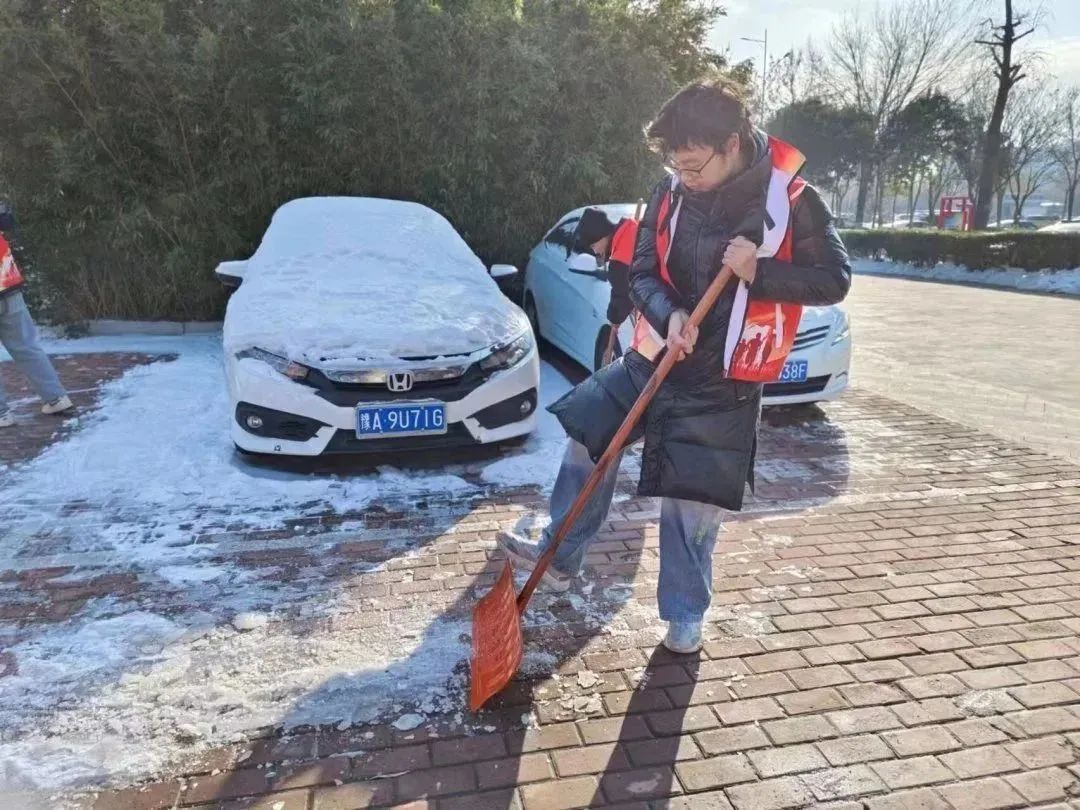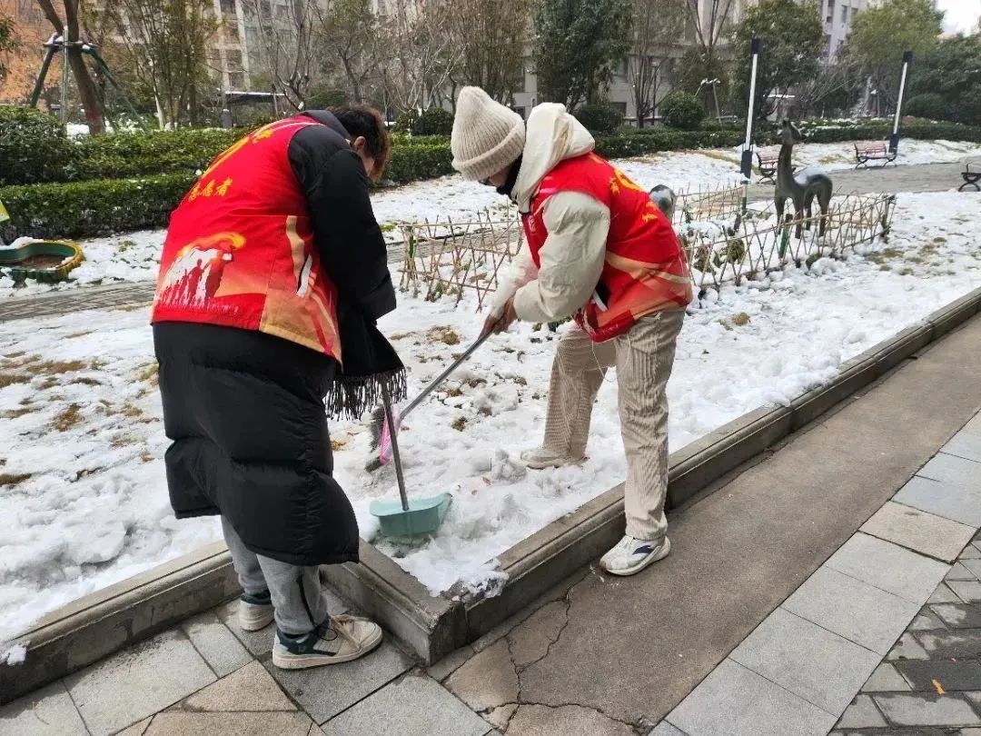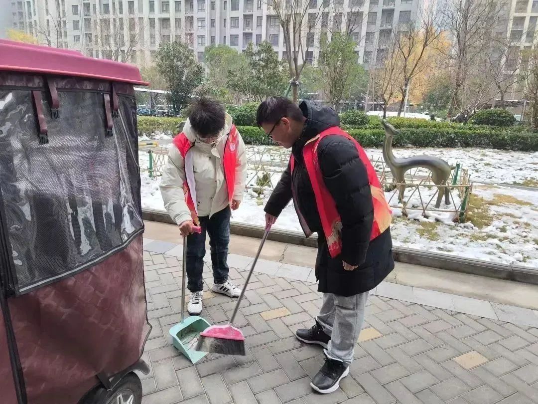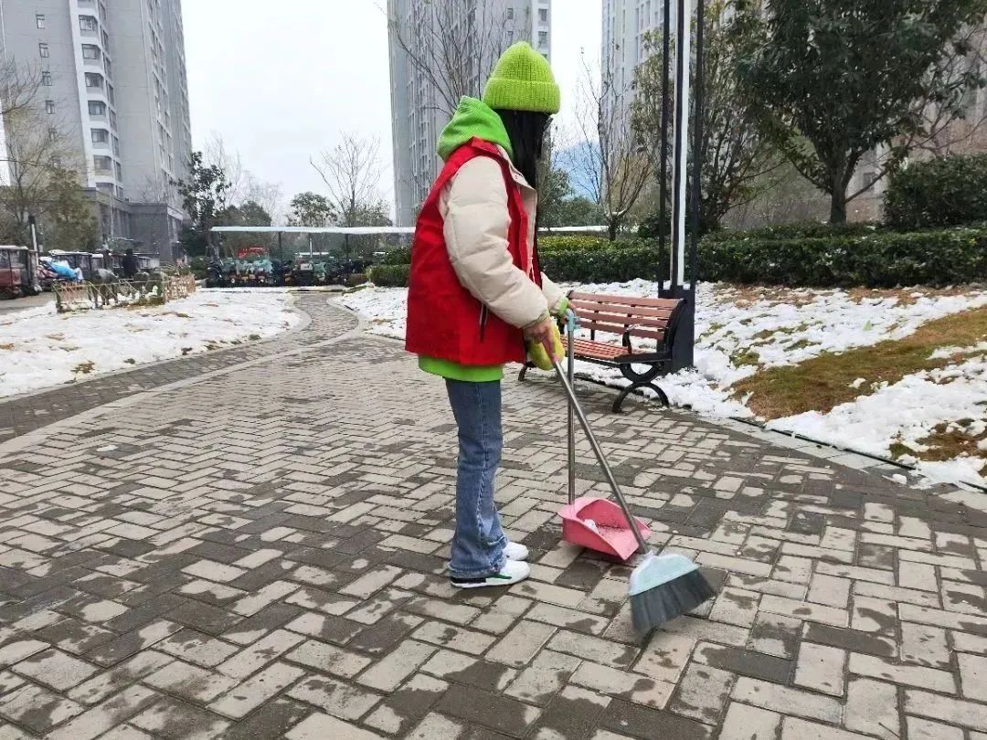 寒风阵阵,并没有阻挡同学们扫雪除冰的热情;白雪纷纷,反而更加激起了同学们的干劲。同学们不畏严寒,干劲十足,以饱满的热情、昂扬的精神风貌积极投入到扫雪破冰行动中。红色的志愿者马甲也为雪白的社区增加了一抹暖意。虽然室外的温度很低,但大家劳动的热情和团结的力量让社区的冬天变得格外温暖。