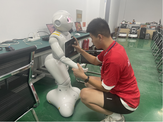 基于调研结果,团队决定选择Pepper机器人作为讲解工具。Pepper机器人具有拟人化设计和丰富的肢体语言,可以通过对其语音、动作和导航能力进行二次开发,使其能够与人进行自然交流。通过集成语音识别和行动模块,团队为Pepper机器人编写了专门的讲解脚本,包括红色人物的生平事迹、革命历史背景等内容,以增强交流的互动性。在开发过程中,团队首先对Pepper机器人的语音识别系统进行了优化,增加了对红色历史相关词汇的识别能力,并完善了机器人的动作和语音模块。经过多轮测试,团队确保了Pepper机器人在实际应用中的稳定性。测试内容涵盖了语音识别准确性、互动响应速度和内容展示效果等方面,确保机器人能够为参观者提供高质量的服务。