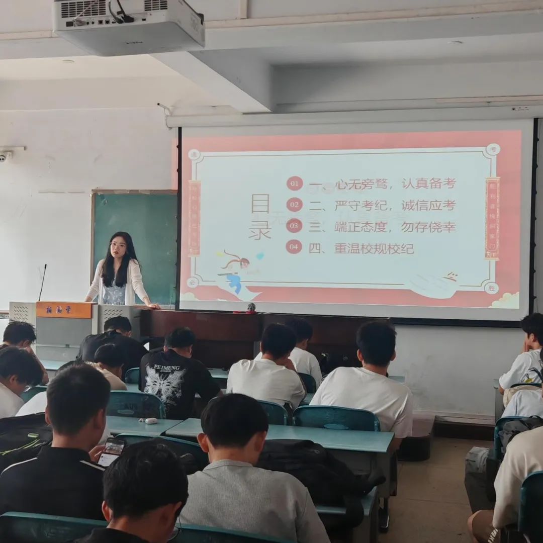 会上,辅导员老师通过列举考试作弊的真实案例,深入浅出地讲解了考试作弊的危害。从个人成绩作废、取消评优评先资格,到对未来升学、就业产生的不良影响,让学生们深刻认识到考试作弊不仅违背了学术诚信,更是对自身学业与前途的不负责。同时,老师们详细解读了学校关于考试的规章制度,强调考试纪律的严肃性,明确指出任何形式的作弊行为都将受到严厉惩处。