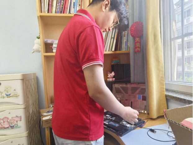 图为实践成员合力解决电动车的线路问题