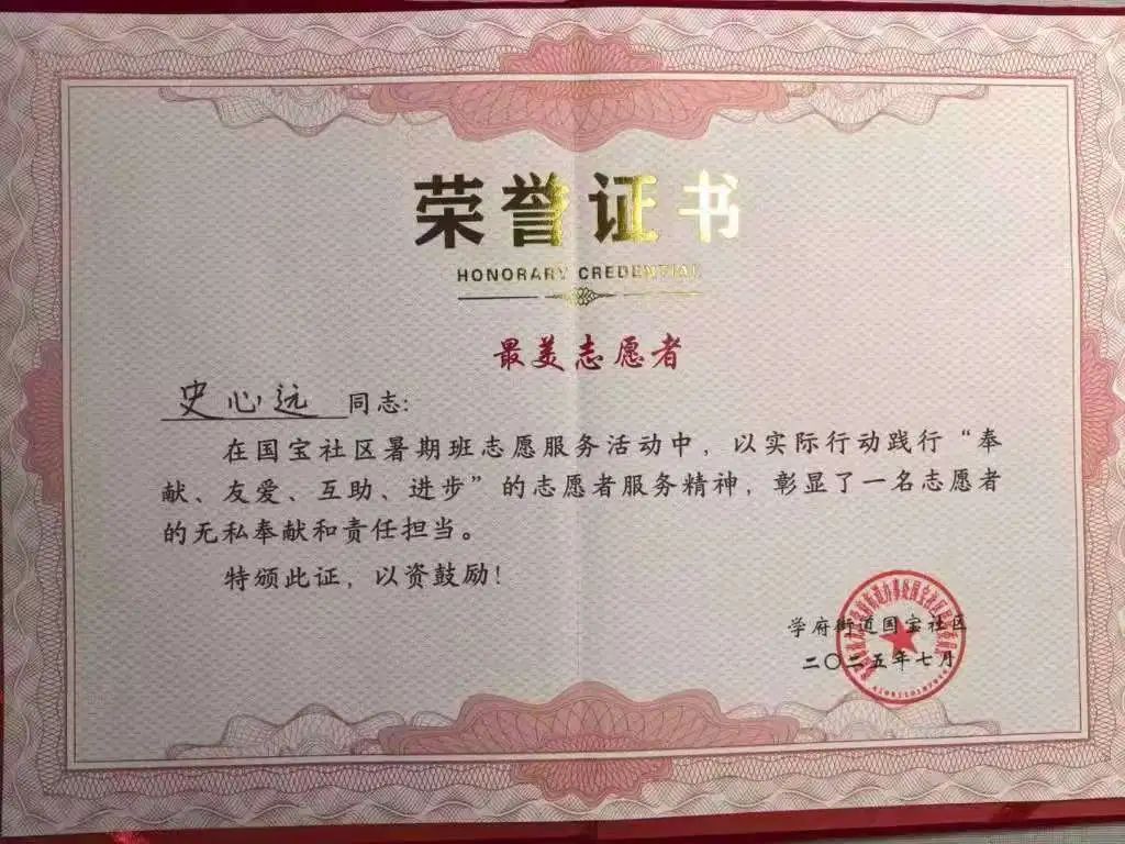 2025年7月,我参与社区“童心守护”儿童托管志愿服务,以照看3-6岁儿童+组织活动+完善安全规范的形式展开,发现托管室防滑垫磨损,已做修补,照顾了注意力分散的低龄儿童,给了他们针对性引导,其中还有性格执拗的孩子,通过耐心交流化解矛盾,有些孩子缺乏分享意识,便设计“分享勋章”激励,向孩子们科普诸如活动安全、玩具使用安全等知识。