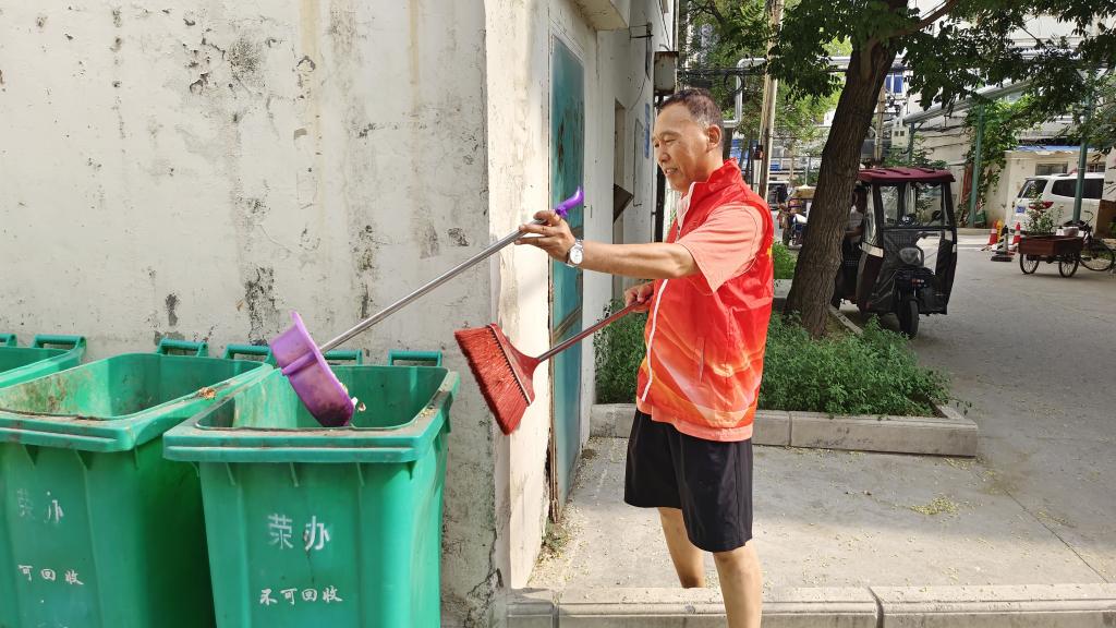 志愿者们身着红马甲,自带清洁工具,按照职责分工深入庭院的角角落落进行清扫。一把铲子,铲去墙上的广告,收集的是健康干净的喜悦;一块抹布,拂去栏杆的灰尘,带来的是对生活的热情;一个扫把,清除井盖地面的垃圾,寄托的是对文明的憧憬。大家干劲十足、积极投入,不怕苦、不怕累,顶着炎炎烈日挥洒着汗水。经过大家的共同努力,楼道、地面的落叶、烟头、纸屑等杂物消失不见,庭院环境焕然一新,他们的辛勤付出赢得居民的一致称赞。