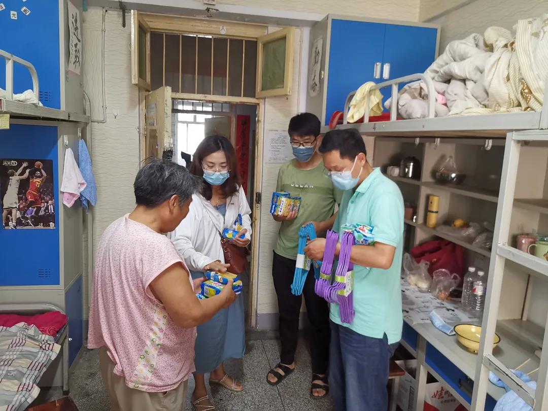 8月2日上午,郎老师主动购置了210块肥皂、40袋洗衣粉、40把衣架送往安置点。我院志愿者将其分发到对接的宿舍群众手里。“老乡,这都是夏天用得着的东西,是我院老师的一份爱心,您收着吧!”志愿者每到一个宿舍就热情地把物资发到老乡手中。“想的真是周到,感谢你们的爱心!”卫辉老乡深表感动和感谢。