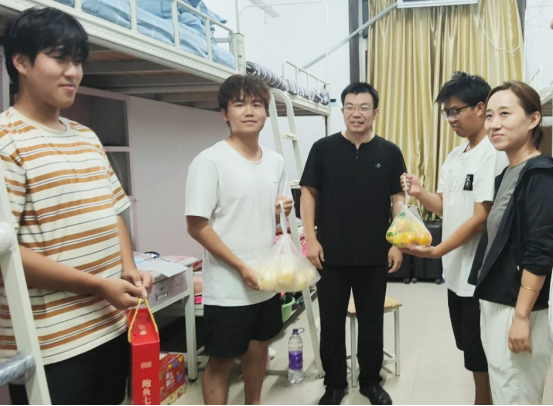丹桂飘香香满校,花好月圆圆全时。在2024级新生在学校迎来的第一个中秋假期之际,9月17日中秋佳节当晚,太阳集团网站8722党委书记张烨,院长周宁,党委副书记陈云飞,副院长连黎明、杜川和2024级辅导员带着满满的心意和祝福,深入到新生宿舍,为大家发放月饼和慰问品,并同大家亲切座谈,共度美好的中秋节日。