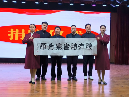 宣讲伊始,作为中国书法家协会会员的牛主席为学校送上了“见面礼”——由他亲书的书法作品《腹有诗书气自华》。