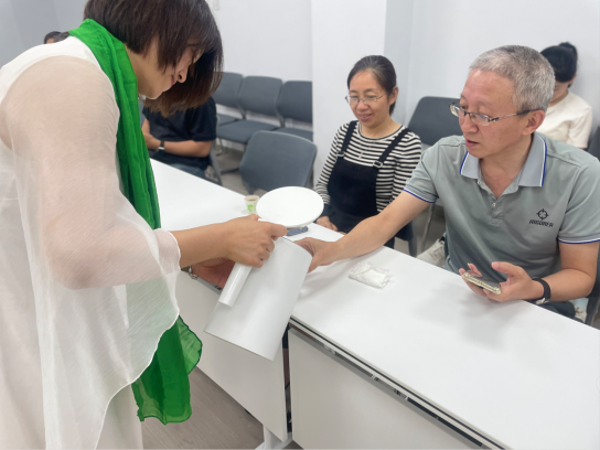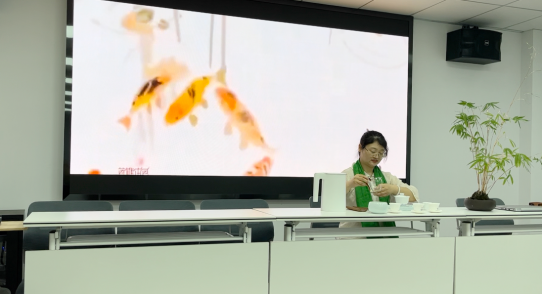 活动中,茶艺师们身着汉服,现场演示了茶品冲泡技艺。温杯、投茶、注水、出汤……行云流水的动作配合讲解,让师生们领略了“水为茶之母,器为茶之父”的奥妙。随后,刘延辉通过沉浸式的品茶体验,让大家在一杯杯的品茶中放松身心、感悟人生、学会感恩。在互动环节,师生们纷纷发言,提出在饮茶中的相关问题,茶艺师们一一为大家解答,现场讨论气氛热烈,大家在互动交流中,沉浸在端午节日与茶文化融合的美好情景中。